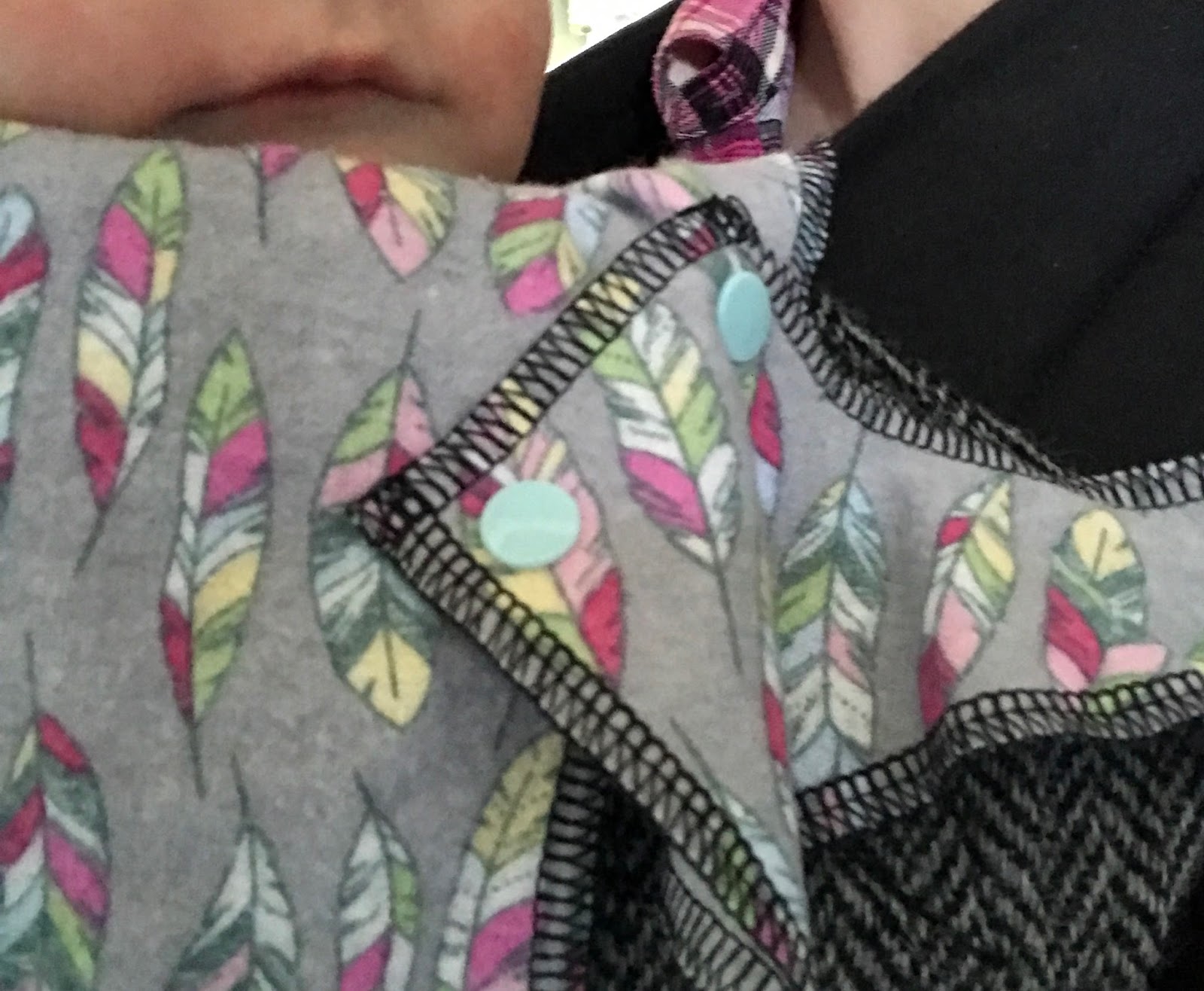 Turns out some little persons produce a lot of liquid and simultaneously enjoy nibbling on their carriers. I made two quick covers so we could remove them after each trip and give them a wash.
